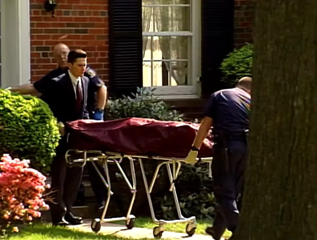 Тело Лесли Прир выносят из ее дома. Кадр: ABC 7 News — WJLA / Youtube