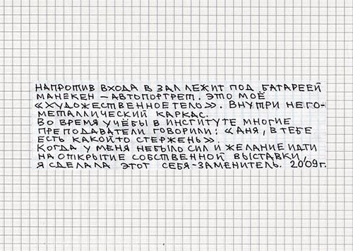 Работе на Венецианской биеннале и кульминации карьеры Анны Желудь посвящена ее последняя выставка «Абзац», открывшаяся 23 мая в московской PA-Gallery. Куратор Дмитрий Белкин так описывает смысл «Коммуникаций»: