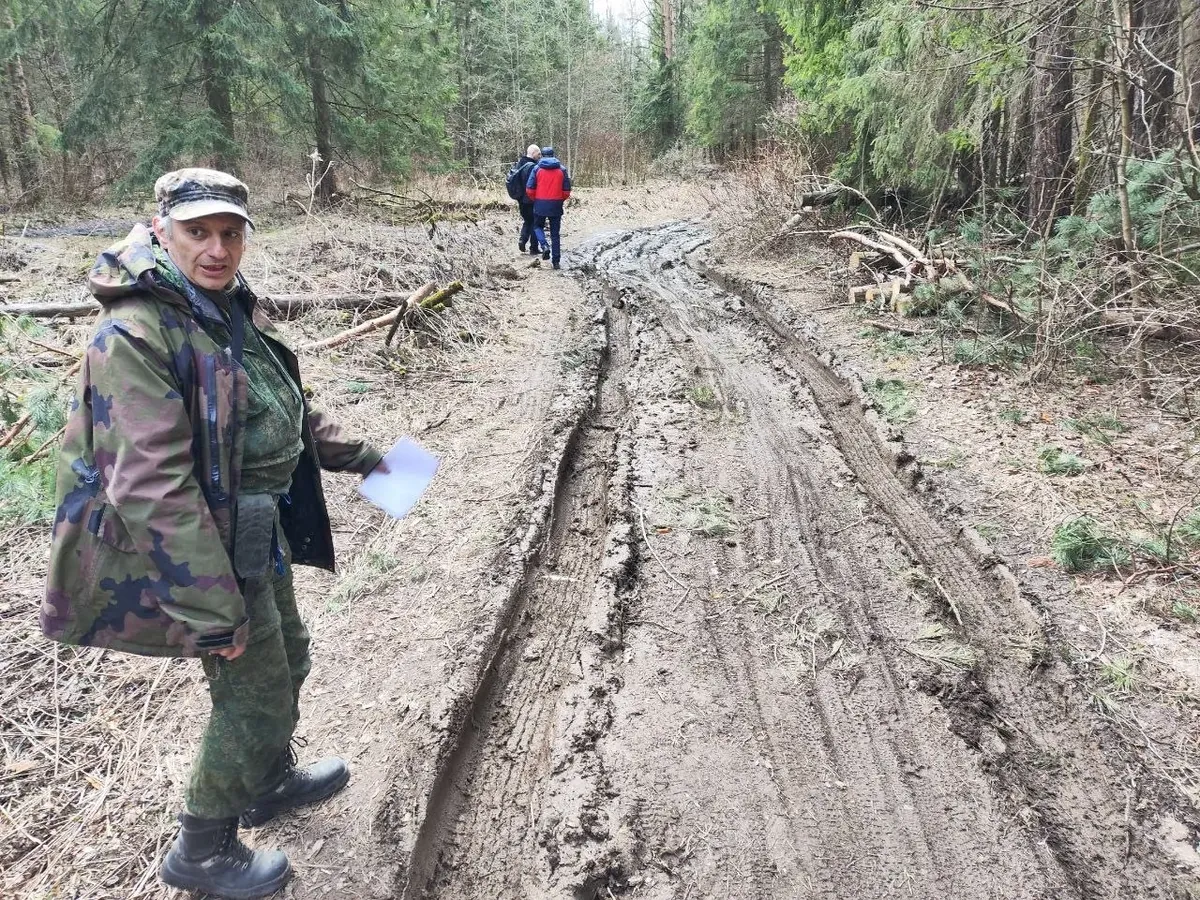 Он приехал в Лосиный Остров в субботу 5 апреля вместе с вице-президентом Русского географического общества, академиком РАН Александром Чибилевым, чтобы тот на местности составил мнение о потенциальных угрозах планируемой дороги для Лосиного Острова. И теперь он с группой присоединившихся защитников леса пробивался сквозь заросли вдоль раскисшей грунтовой колеи.