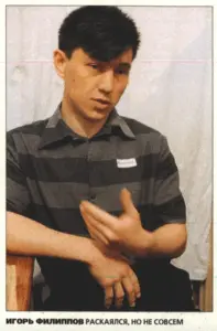 Один из самых молодых среди пожизненников лысьвенской колонии, 29-летний Игорь Филиппов, сидит уже шесть лет, из них три — в ожидании расстрела. В 1989 году он убил свою беременную жену. Спустя шесть месяцев убил старушку, заводскую кассиршу, чтобы завладеть хранившимися у неё ключами от сейфа с деньгами. Он утверждает, что на второй год «под вышкой» раскаялся.