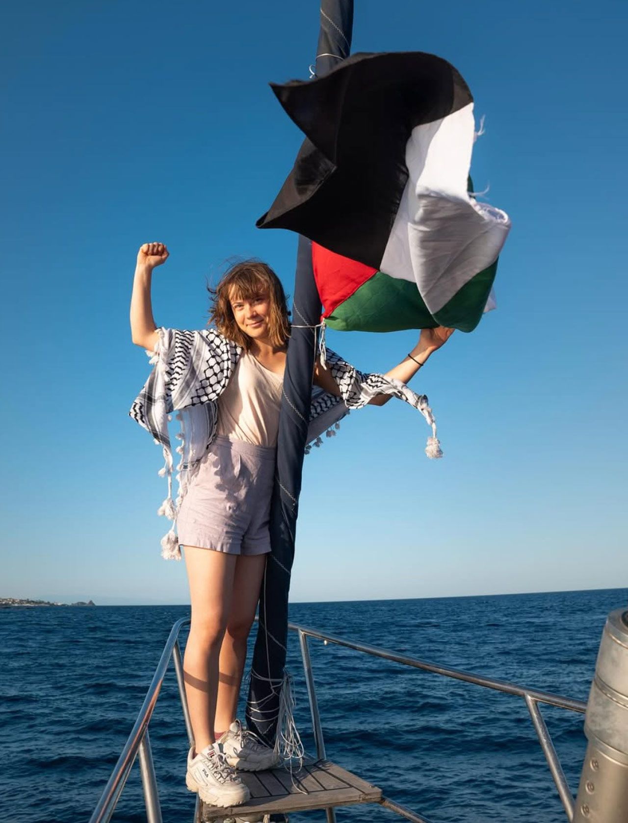 Грета Тунберг на борту яхты «Мадлин», июнь 2025. Freedom Flotilla Coalition