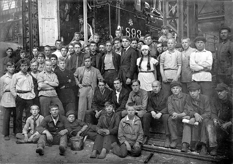 Будущая «народная команда» пришла на завод и позирует вместе со своими болельщиками. В центре Николой Старостин, 1924 год