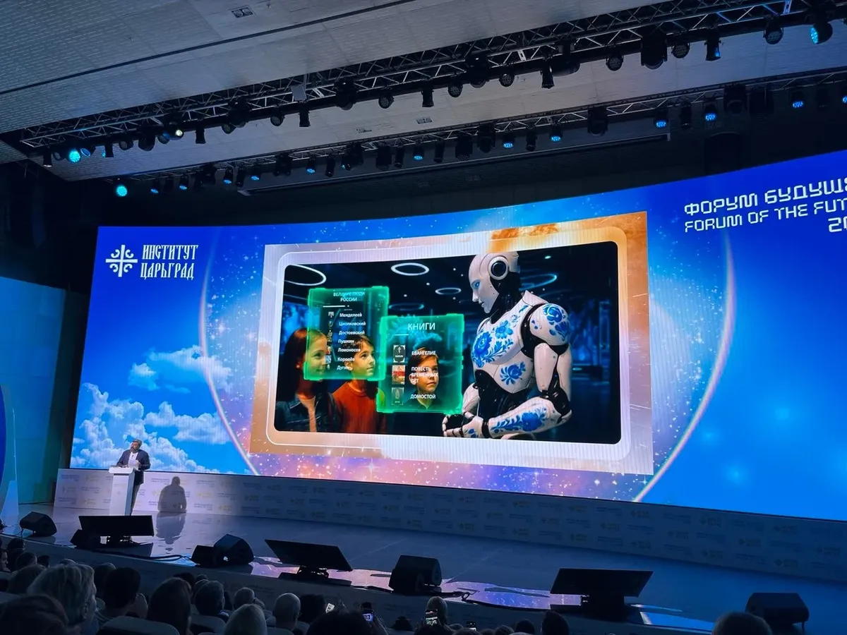 В результате внедрения всего этого Россия сможет вернуться на лидерские позиции в космосе и к 2050 году полететь на Марс, бросив тем самым вызов и США, и Китаю с Индией, с которыми, впрочем, было бы неплохо в этой сфере посотрудничать. Разовьется отечественная робототехника, ибо «робот лучше мигранта» и призван заменить его везде, где только можно (в этот момент на экране появились картинки с роботами, раскрашенными гжельскими узорами, а зал восхищенно ахнул). И наконец, в России будет развит свой собственный искусственный интеллект, который будет натренирован не на Ювале Харири или еще ком-то типа него, а на Евангелии, Дугине, Домострое и Достоевском.