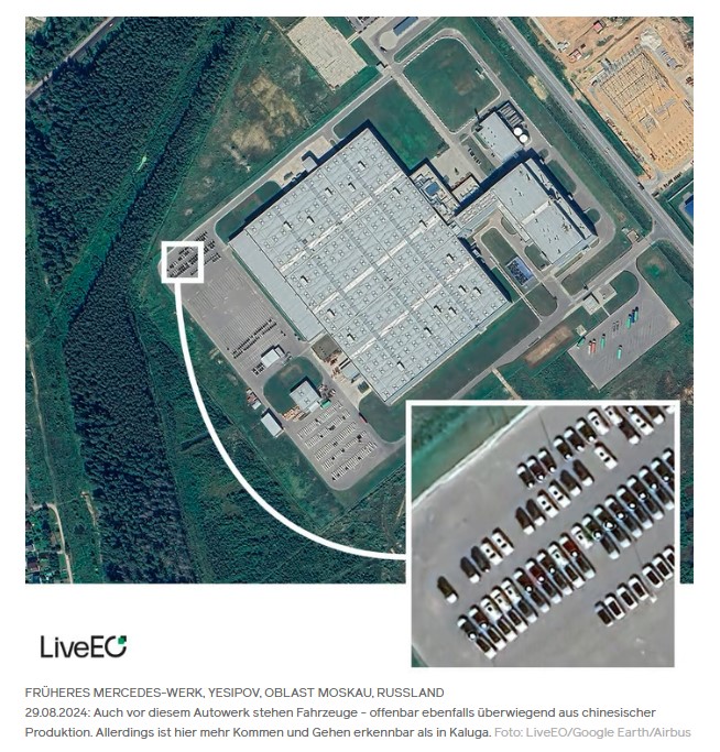 В 180 километрах к северу от Калуги, вокруг бывшего завода Mercedes в Есипове, также припаркованы автомобили, по всей видимости, произведенные Chery, свидетельствуют спутниковые снимки. В основном, это люксовые внедорожники Exeed, пишет Wirtschaftswoche. Снимки зафиксировали вокруг завода в Есипове больше активности, чем в Калуге: машины паркуются, но потом снова исчезают. Тем не менее, согласно статистике, продажи Exeed сильно пострадали в последние месяцы: продажи упали на 70 процентов по сравнению с прошлым годом.