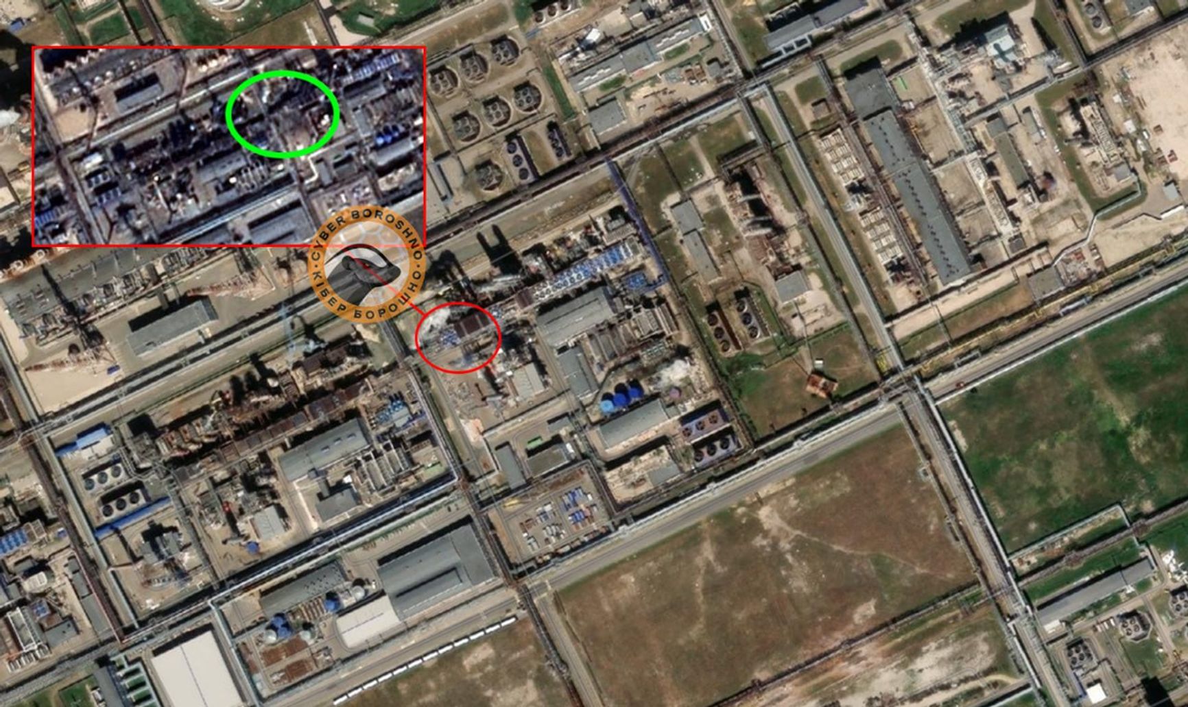 Спутниковый снимок последствий налета 8 июня 2025 года на предприятие «Азот» в Новомосковске в Тульской области