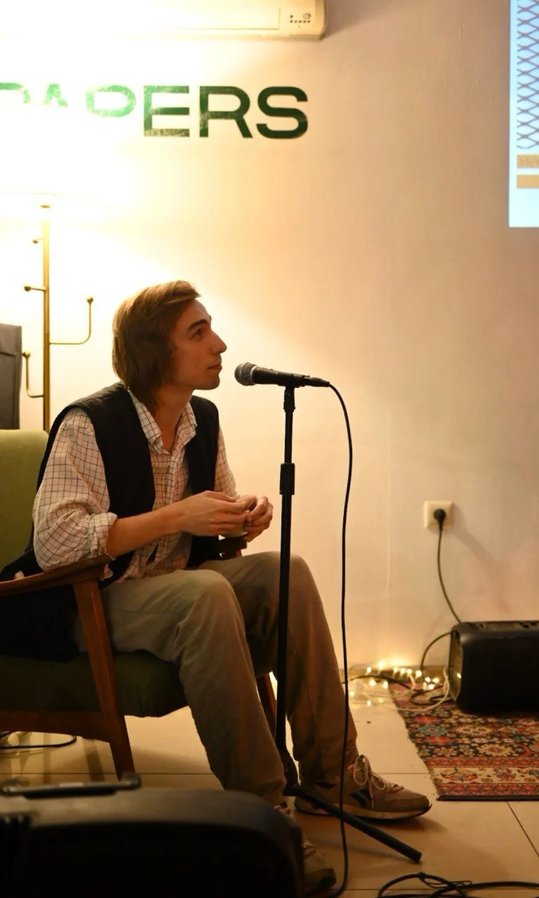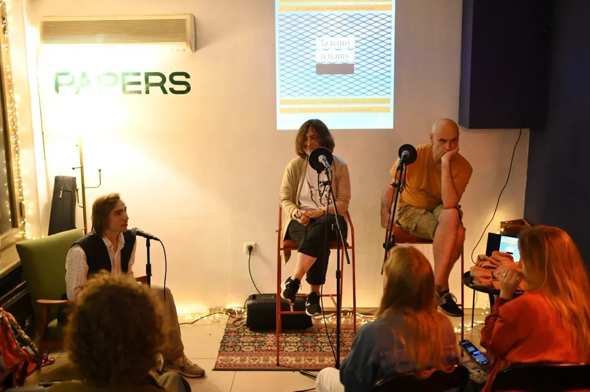 В день своего рождения мы провели фестиваль в Тбилиси в поддержку независимой культуры, на который пришли десятки людей. Одним из центральных событий его стала дискуссия с Евгенией Лавут, поэтессой и соосновательницей издания об эмигрантской литературе «слова_вне_себя», и журналистом Шурой Буртиным.