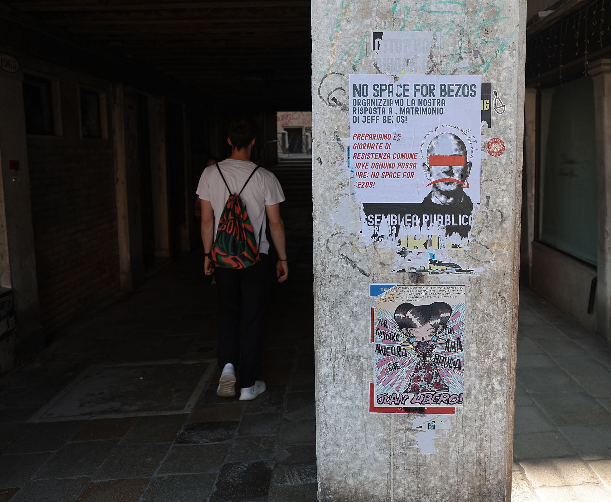 Перед приездом Безоса, его невесты и их гостей на стенах в Венеции расклеили плакаты «No space for Bezos» («Нет места Безосу»), а на главной площади развернули огромный баннер с надписью: «Если вы можете арендовать Венецию для свадьбы, вы можете заплатить больше налогов» (по слухам, свадьба Безоса стоит примерно 10 миллионов долларов). Активисты также не намерены отказываться от акции протеста перед Scuola Grande della Misericordia. Полиция пообещала, что усилит меры безопасности.