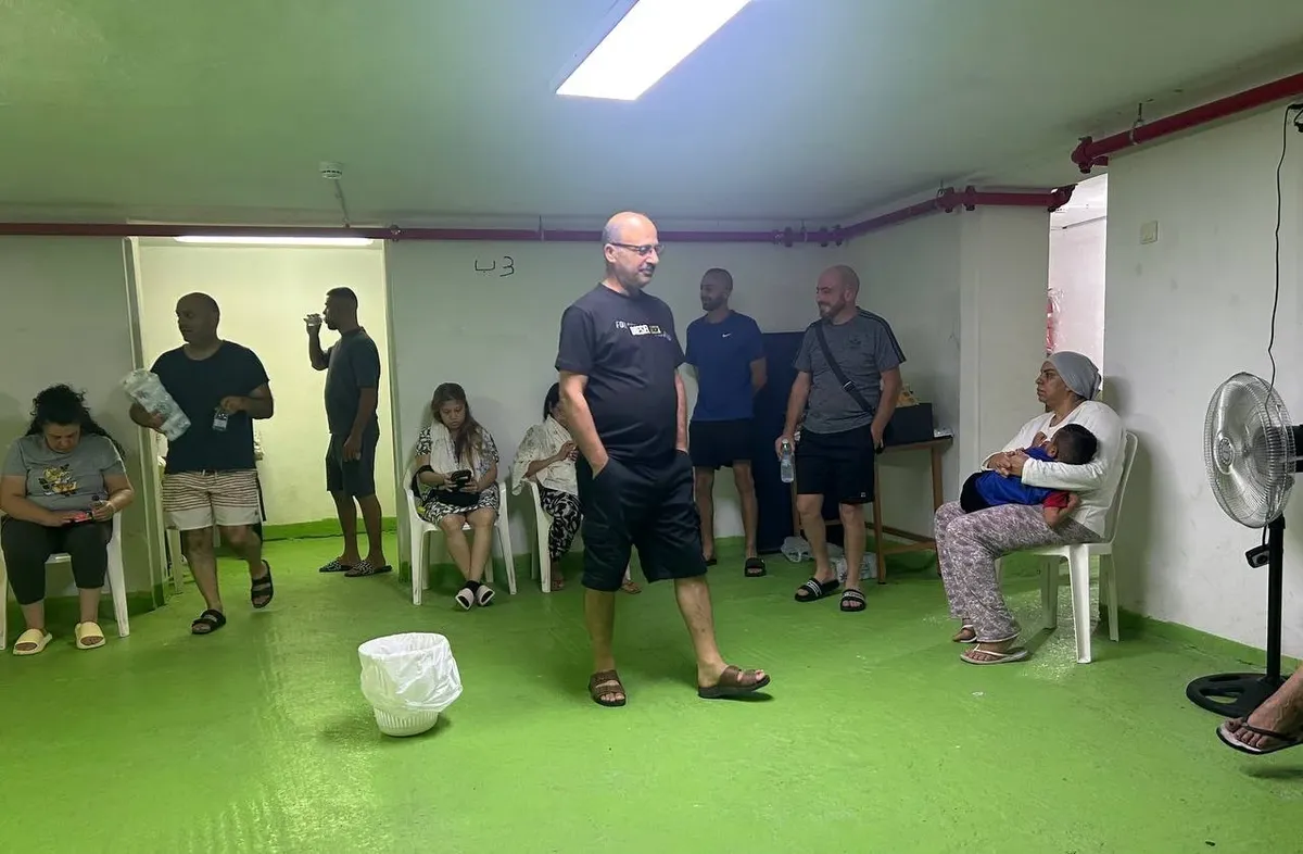 Ну, дома у нас миклат (укрепленная бетонная комната) прямо за дверью, заходим туда раньше соседей с других этажей, и я всякий раз беру фляжку и рюмочки, наконец-то все познакомились…