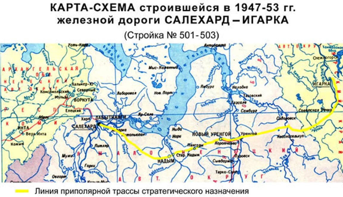 Уже проложены 911 км трассы из 1263 запланированных, построены десятки мостов. До встречи 501-й и 503-й оставался участок посередине, Пур-Тазовское междуречье, и еще немного. Это год-два жизни Сталина. И будь они у него — что произошло бы в зиму на 1955-й?
