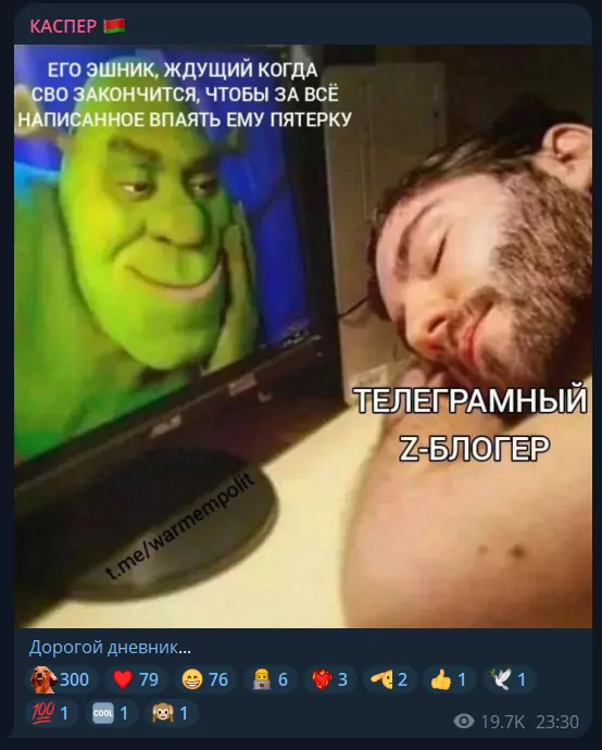 Вот вам самый наглядный пример — атака украинских беспилотников на военные аэродромы стратегического назначения, так называемая операция «Паутина». Все видео атаки, распространенные СБУ, были опубликованы и тщательно проанализированы российскими военными авторами. Z-блогеры, особенно те, что сами воюют, написали об уничтожении десятка «стратегов» сотни текстов. Возмущенных текстов, аналитических текстов, а также довольно точных и емких текстов, порой состоящих буквально из двух слов: «пиздец» и «позорище».