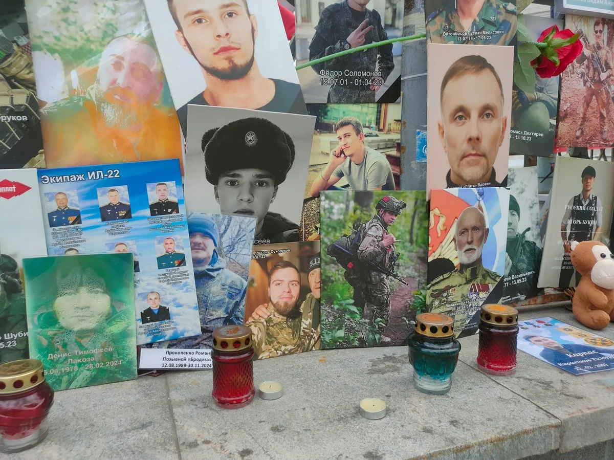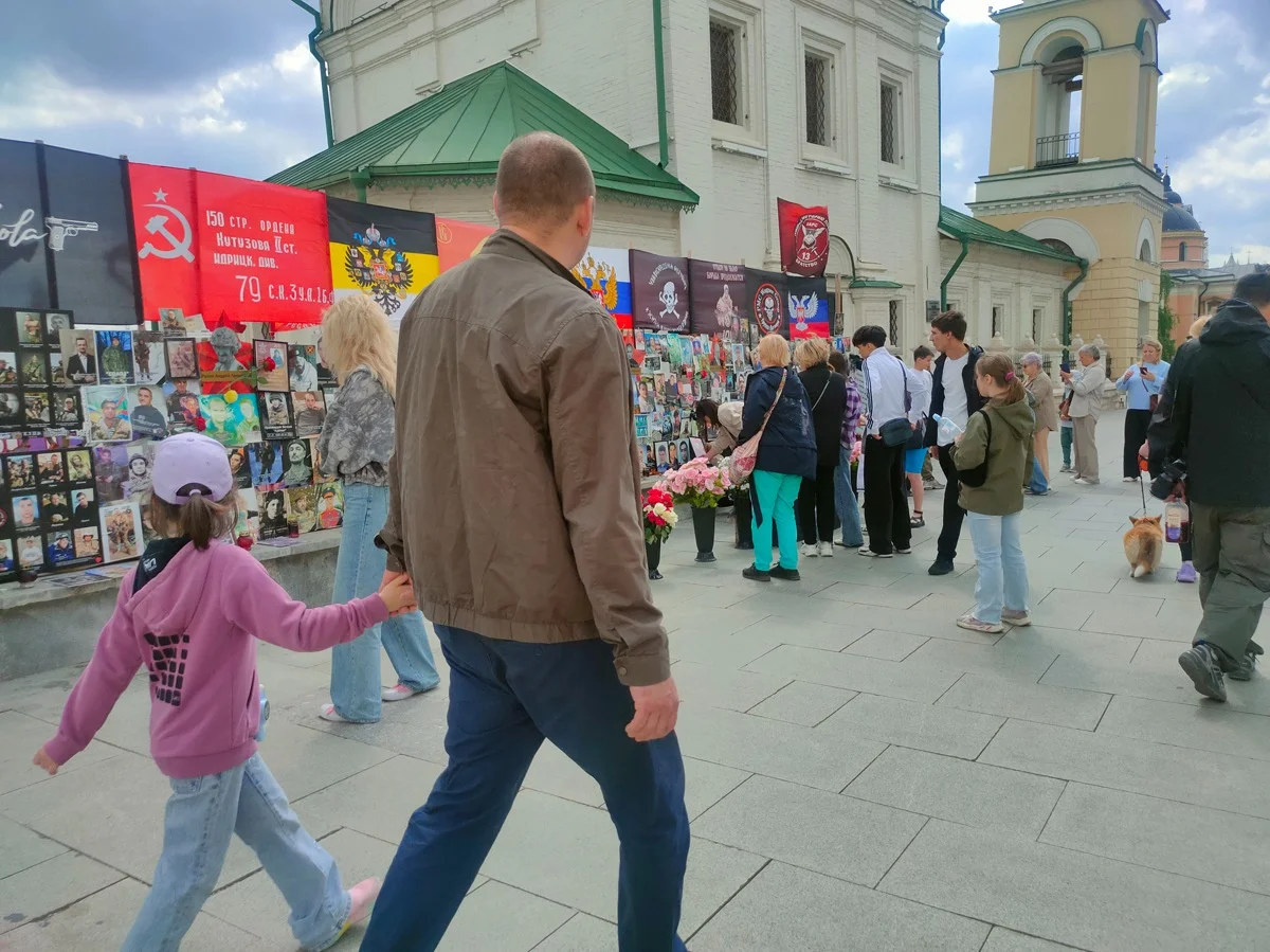 Многие прохожие чуть замедляют ход, чтобы разглядеть фотографии погибших бойцов. Кто-то задерживается здесь на пять-десять минут, некоторые — даже дольше.