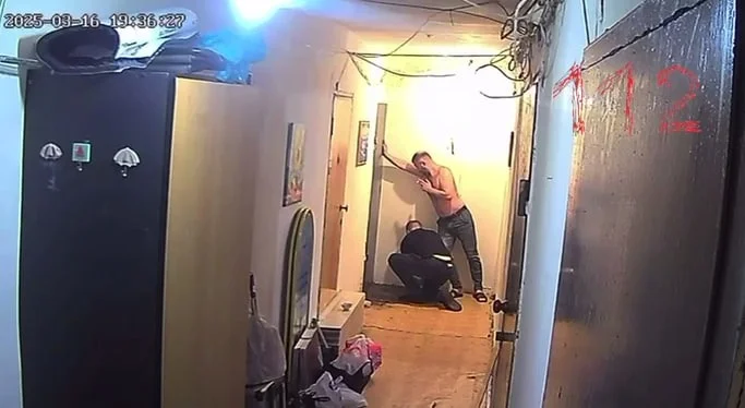 Установка растяжки и момент ее срабатывания попал на камеру наблюдения одной из квартир. На видео есть и дата съемки: 16 марта 2025 года.