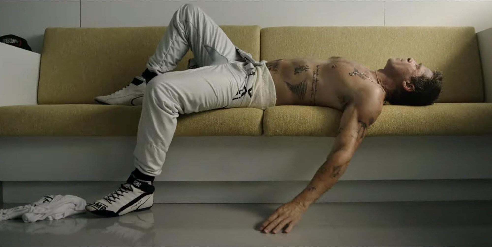 Косински предпочитает безопасную игру с проверенными ходами и фигурами, если не сказать краплеными картами. Брэд Питт — туз в рукаве. Стоит ему появиться в кадре, и публика теряет волю. Ему достаточно, по старому советскому анекдоту о певице Людмиле Зыкиной, просто ходить туда-сюда. А уж если гонять… Простят даже сцены состязаний, когда не видно ни гонщика, ни его скрытого под шлемом лица (вскоре зрителей вознаградят кадрами татуированного торса). Питт есть Питт, его харизму не испортить ни скверными диалогами, ни клишированным сюжетом. Их артист принимает как вызов и кладет на лопатки одной небрежной улыбкой.