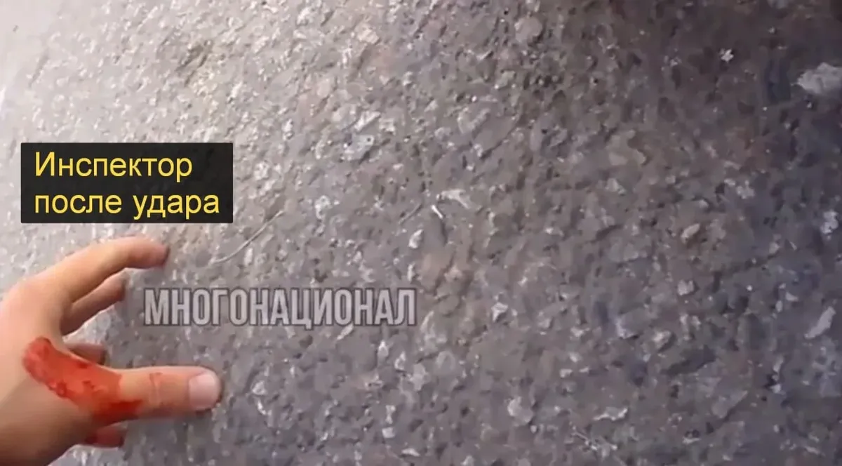 Судя по видео, после этих слов «Талиб» близко подходит к инспектору, после чего слышен шум и инспектор падает, вероятно, получив удар, и не один. Что понятно по звукам одышки, видео падения и — крови на руках, которыми полицейский утирает лицо.