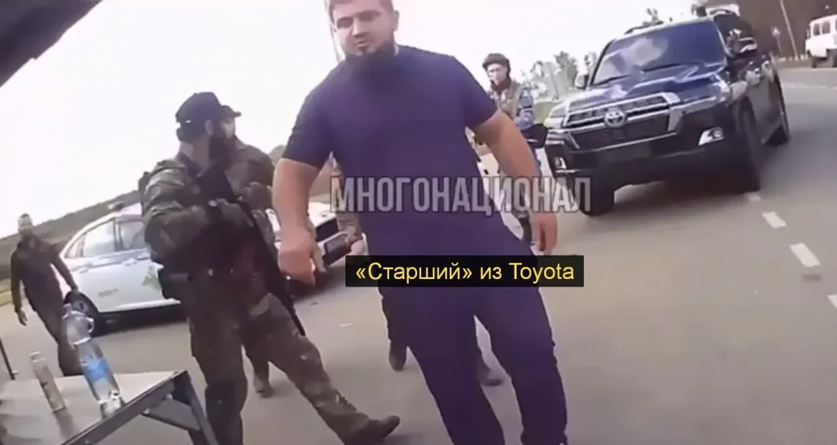 Z-блогеры распространяют и активно комментируют запись с носимого видеорегистратора сотрудника военной полиции (ВАИ) с экипажем остановленного им за нарушение ПДД автомобиля, из которого вышли вооруженные чеченские бойцы, чьи лица и шевроны хорошо видны в кадре.