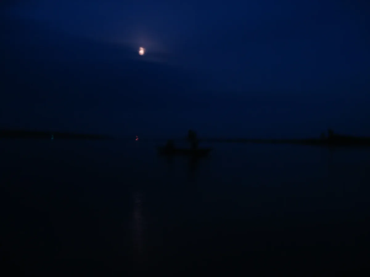 В тот вечер удаются четыре тони. Мы с одним из Серег встаем на завозное крыло невода. Или, в терминологии местных, бегун. Ожидая его, идем на ход лодки по урезу воды, по мелкозернистому песку, по пляжу, на котором никто никогда не загорал. Дойдя, просто стоим в тишине. С нами передвигаются и стоят две большие корзины, в них мешки под будущую рыбу, на них — фонарь, ножи, а также всё для скорой трапезы — хмельной напиток, шмат сала, две буханки хлеба.