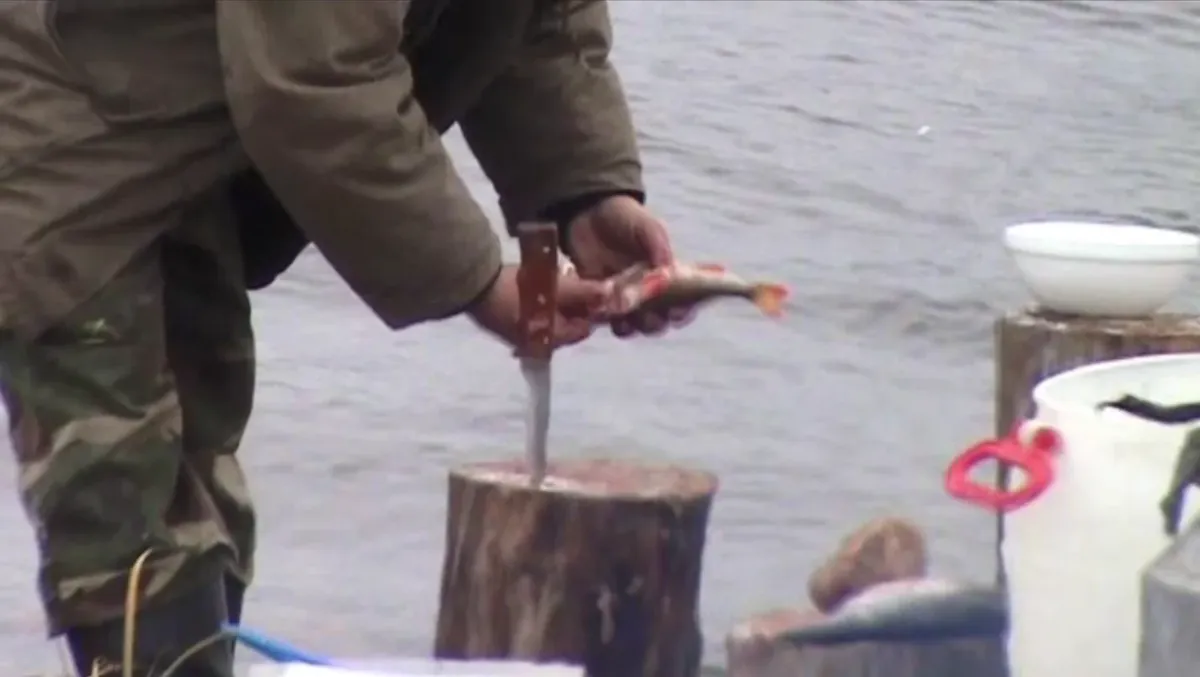 Серега, пока на него не глядели, отпустил большого горбатого окуня: