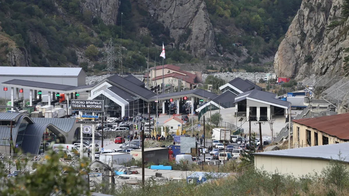 A Russian-Georgian border checkpoint at Stepantsminda, 30 September 2022. Photo: Davit Kachkachishvili / Anadolu Agency / Abaca Press / ddp images / Vida Press