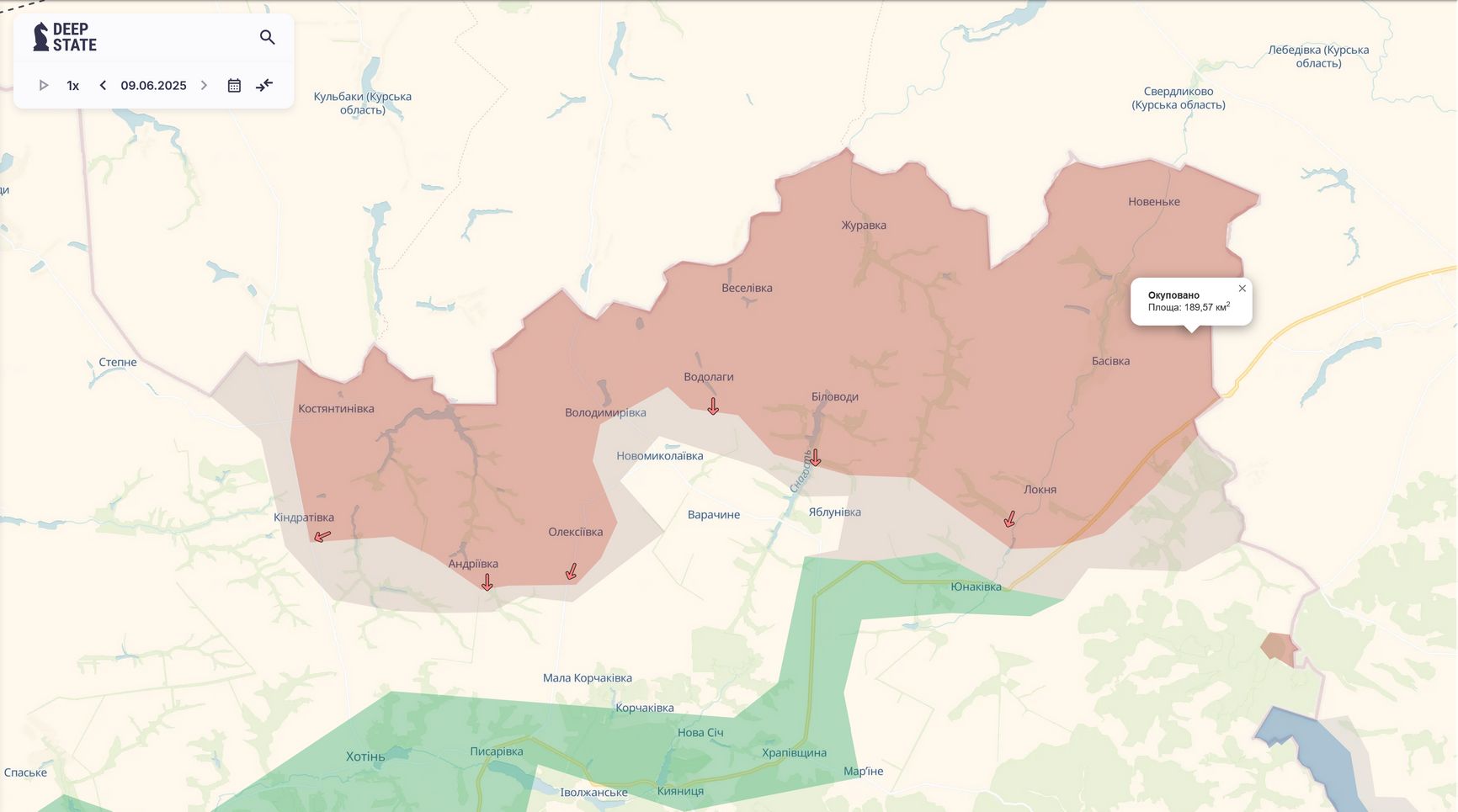 Зона боевых действий в Сумской области 9 июня