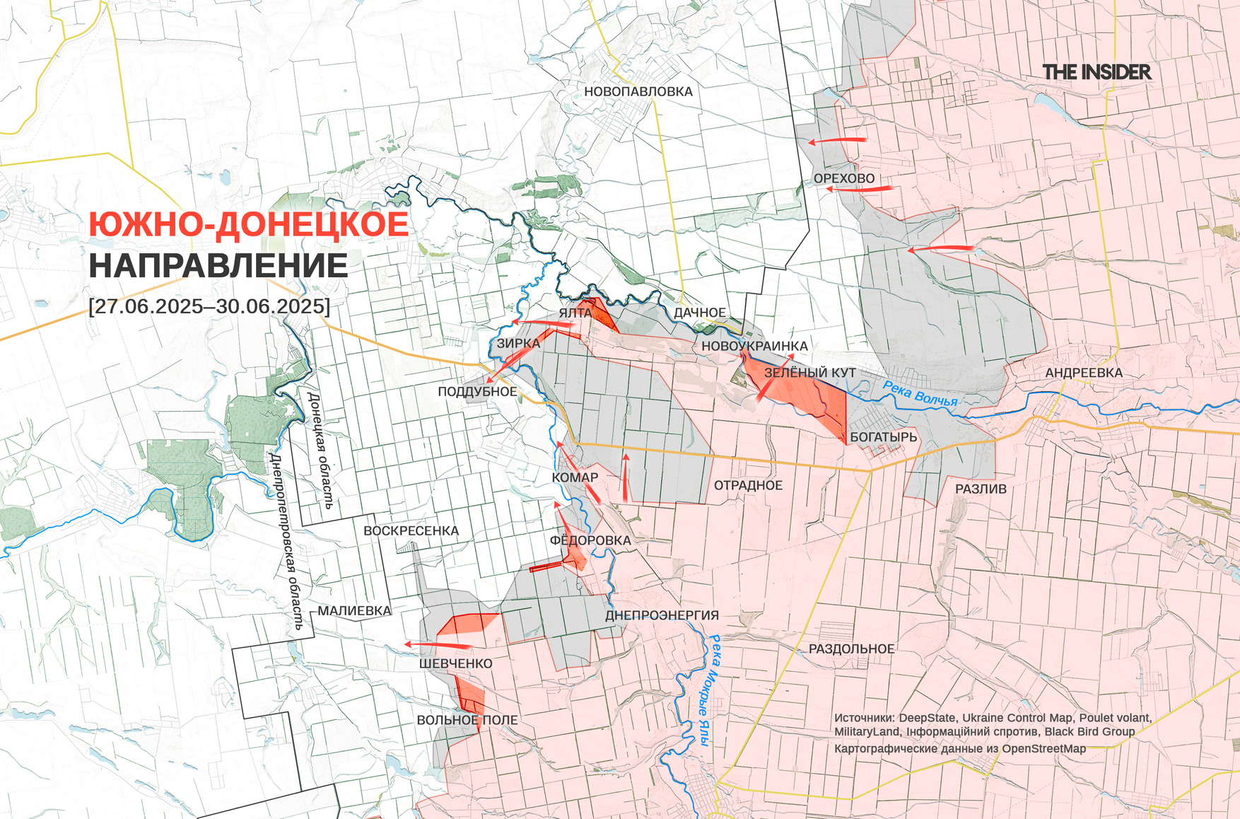 DeepState отмечает на карте продвижение российских войск возле Зелёного Кута, Зирки (до 2016 года — Червоная Зирка), Ялты, Вольного Поля, Шевченко и Фёдоровки в условном «квадрате», образованном реками Мокрые Ялы и Волчья.