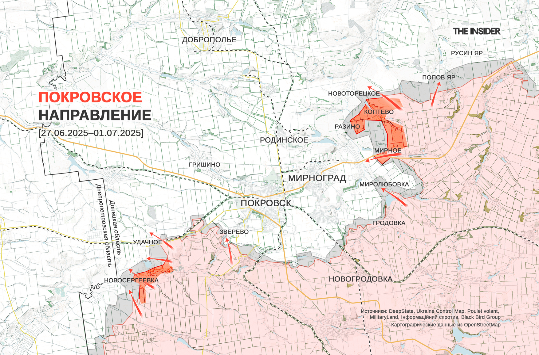 На покровском направлении ВС РФ сформировали «дугу» вокруг агломерации Покровска (до 2016 года — Красноармейск) и Мирнограда (до 2016 года — Димитров).