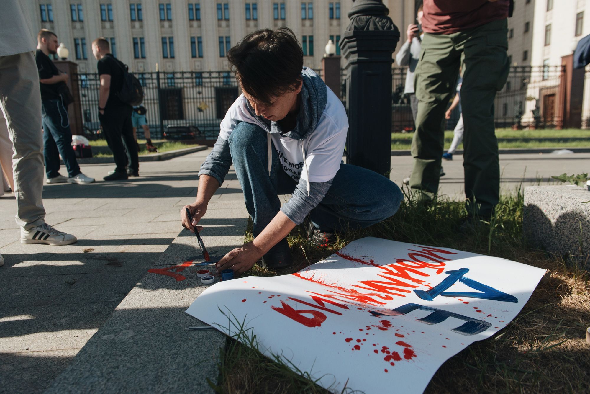 «Когда „Путь домой“ вышли на митинг КПРФ, там была девушка, которая открыто высказалась против войны. Она была женой мобилизованного, ее муж требовал, чтобы она молчала. Потом он погиб. Можно молчать, но в какой-то момент запас удачи кончится, и тебя пришибет дроном, — считает Семенова. — [На прошлой акции] мы зафиксировали, что не все хавают повестку, которая подается под видом великолепного блюда. По факту это просто пирог из говна».