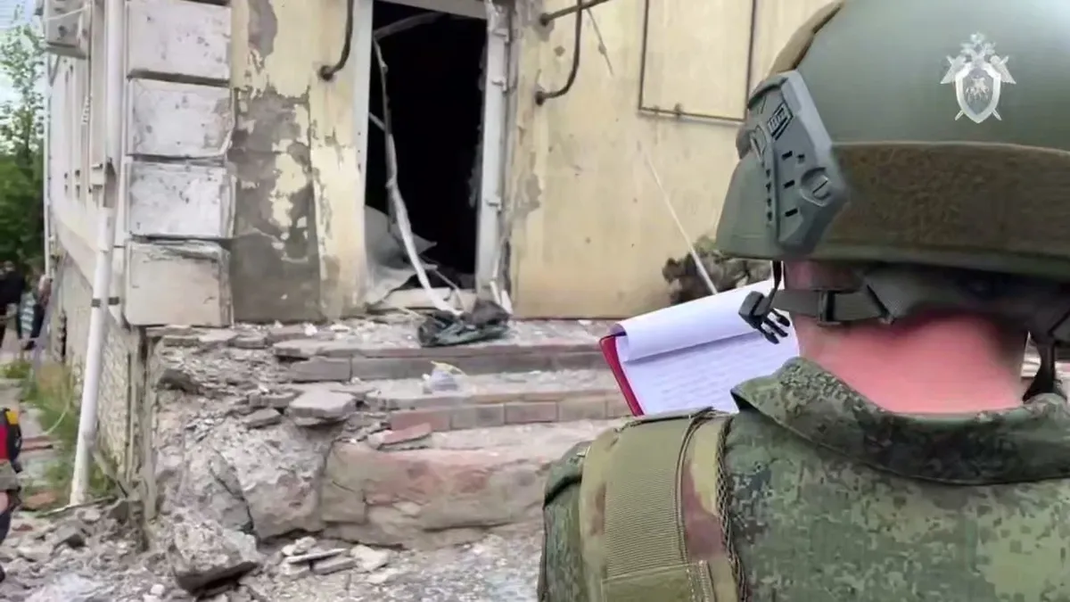 На кадрах очевидцев виден поврежденный угол дома, взрывной волной вырван козырек над входом, выбиты стекла, разворочена лестница. СК завел уголовное дело, опубликовано видео осмотра места происшествия.