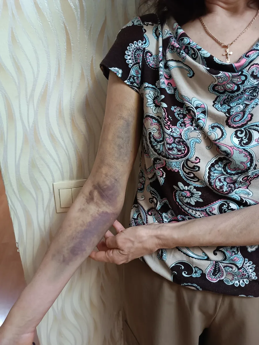 Коллега Волковой, учитель Сергей Рахманин, рассказал, что у женщины диагностировали перелом плеча и разрыв сухожилия, также на ее теле остались множественные отеки и синяки.