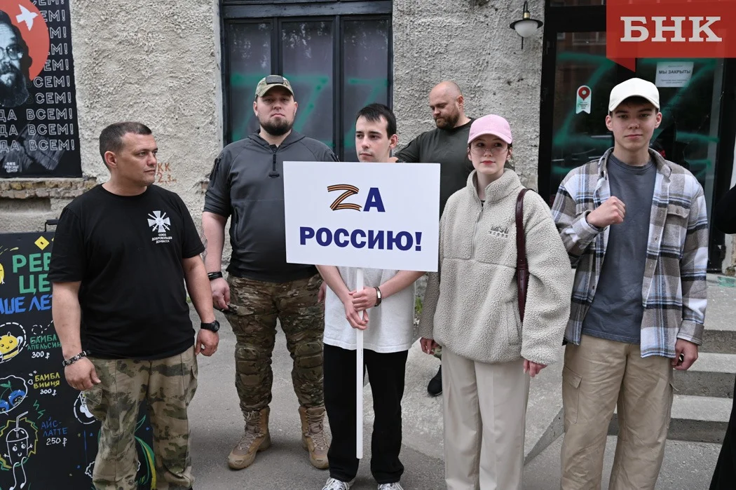 Об акции ура-патриотов у «Револьт-центра» есть сообщение в издании BNKomi. Там рассказывают, что к зданию с пикетом пришла патриотическая общественность с плакатами «Zа Россию!» и местный «Союз добровольцев Донбасса». А на фотографиях видно, как люди в камуфляжной форме пытаются разглядеть через окна и уже разбитую дверь, что находится внутри.