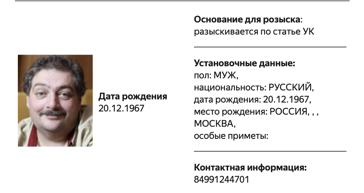 В базу федерального розыска на сайте МВД добавили писателя Дмитрия Быкова, заметила «Медиазона».
