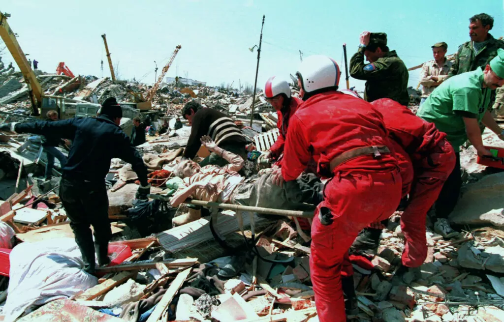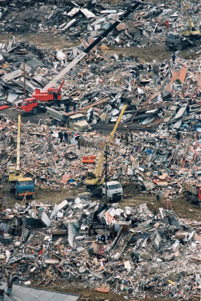 В ночь с 27 на 28 мая 1995 года на Сахалине началось землетрясение с магнитудой более семи по шкале Рихтера. В городе Нефтегорск за 17 секунд практически все здания сложились, как карточные домики, а сразу после этого в поселке начались пожары. Катастрофа унесла жизни более двух тысяч человек. Из-под завалов доставали пары, лежавшие в обнимку, истощенных детей и останки заживо сгоревших в руинах жителей. Выжившим ампутировали конечности прямо среди обломков, а у поисковых собак стерлись лапы. Город не стали восстанавливать, а некоторые уцелевшие в катастрофе, похоронив родных, кончали жизнь самоубийством или спивались на кладбищах. Нефтегорская трагедия — в рубрике «Катастрофы».