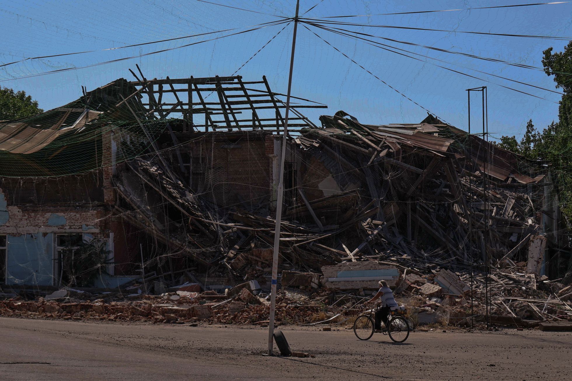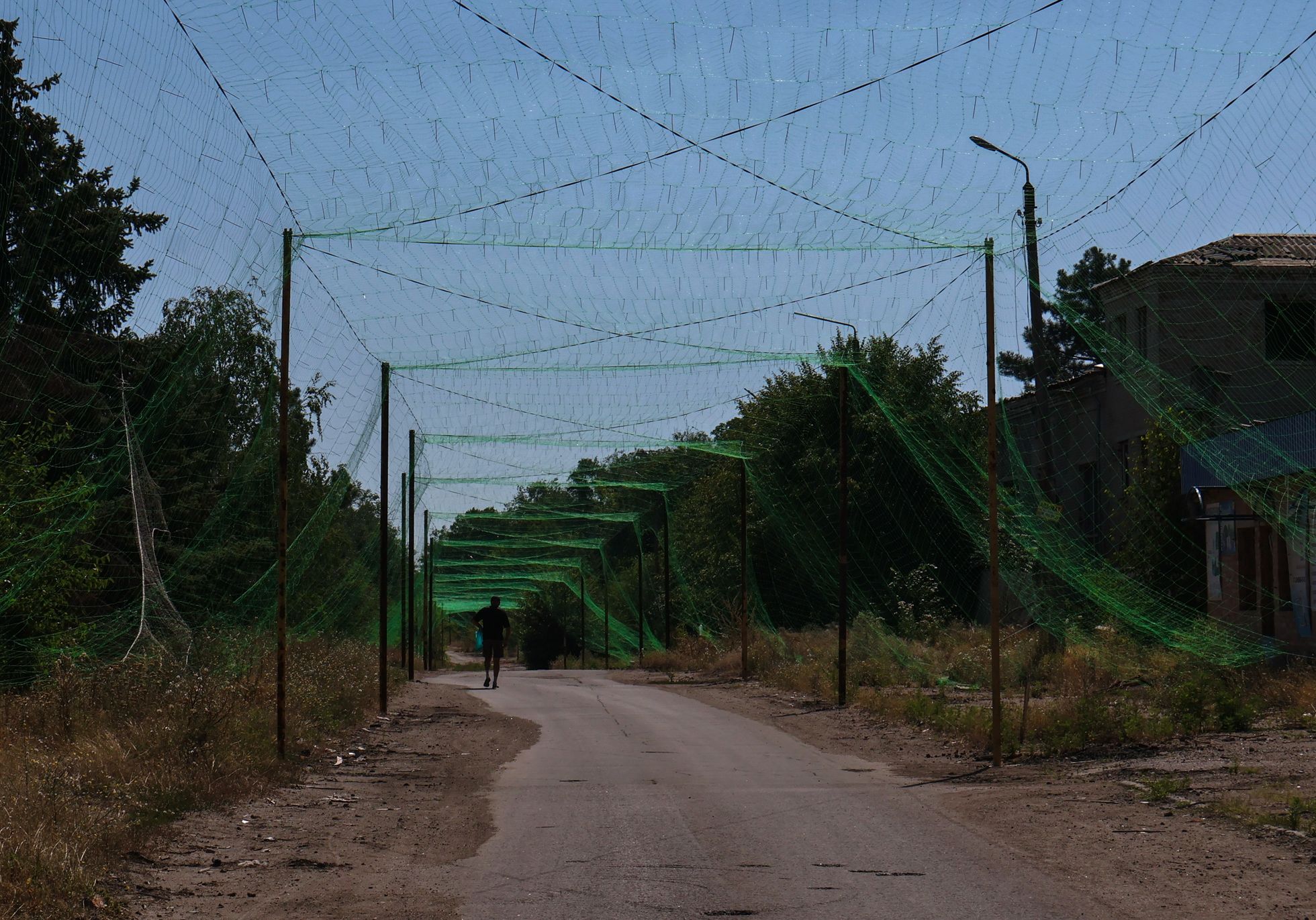 ВСУ начали активно устанавливать над дорогами антидроновые сетки, чтобы защититься от атак FPV-дронов. Как рассказал 18 июля украинский военный Влад Волошин, такими сетками накрывают десятки километров дорог «на некоторых опасных направлениях». Волошин опубликовал в фейсбуке фотографии с сетками, натянутыми над улицами в городе Орехове Запорожской области и его окрестностях.