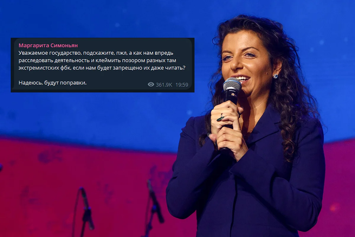 Глава медиагруппы «Россия сегодня» и телеканала RT Маргарита Симоньян также раскритиковала законопроект, заявив, что, в случае его принятия, станет невозможным «расследовать деятельность и клеймить позором» оппозиционные организации. «Надеюсь, будут поправки», — написала она в своем телеграм-канале.