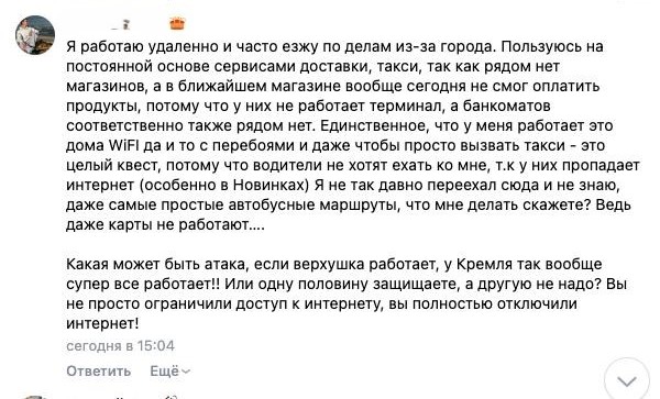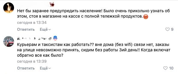 Критические проблемы возникают у регионального бизнеса — служб такси и доставки, которым для работы необходима связь с курьерами.
