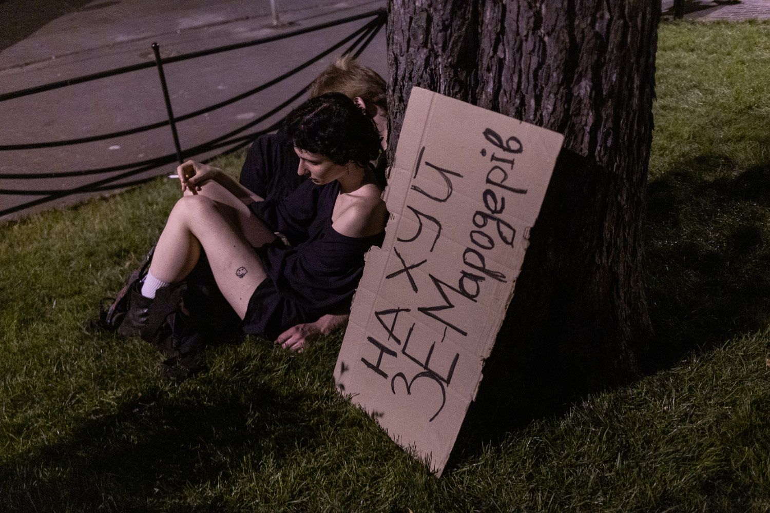Вторая категория протестующих — это ветераны, которые, в свою очередь, сами говорят: «Я не за это воевал». Было много ветеранов, получивших увечья: без ноги, без руки, без глаза. Большинство военных, конечно, на фронте, но встречались нам и те, кто сейчас находится в Киеве в командировке, а на протесты пришли в штатском. Они не особо светились: им бы за это прилетело.