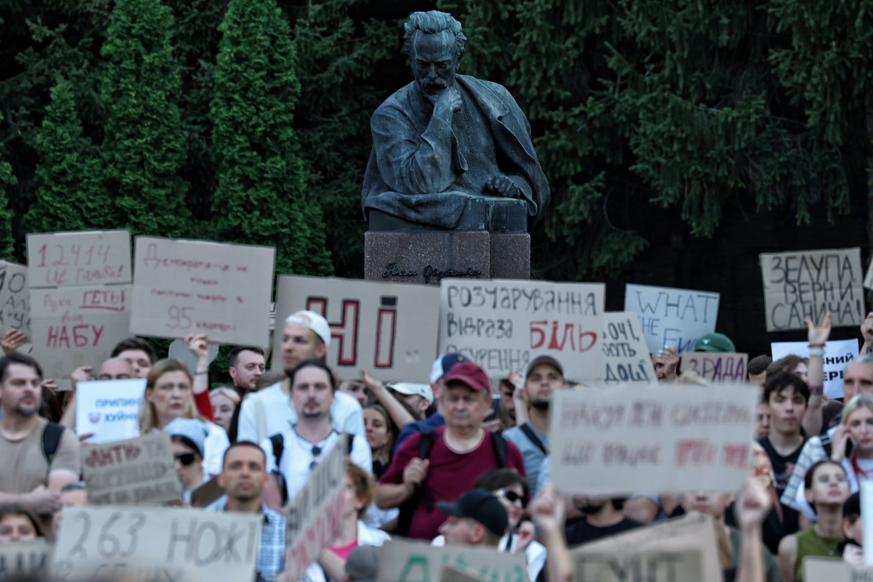 Украинские города на этой неделе всколыхнули первые с начала войны массовые протесты, вызванные действиями властей. Поводом стал законопроект о ликвидации независимости и подчинении Генпрокуратуре двух антикоррупционных ведомств — Национального антикоррупционного бюро (НАБУ) и Специализированной антикоррупционной прокуратуры (САП). Документ сначала приняла Верховная Рада, а затем подписал и президент Украины Владимир Зеленский. После многотысячных митингов по всей стране Зеленский внес законопроект, который отменяет его же закон.