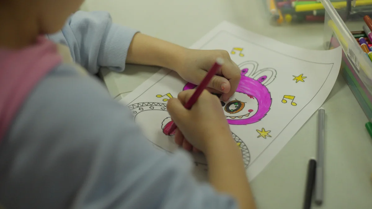 «Мне кошку», — подбегает к учительнице девочка и просит вырвать из альбома еще одну страницу. Преподавательница Анна Постоленко отрывает, и ребенок с листом в руках присоединяется к другим за столом и начинает рисовать.