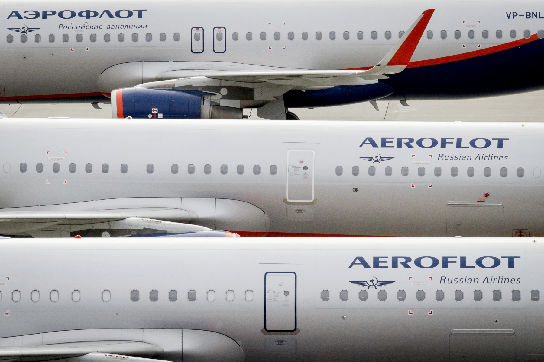 Фото: Пассажирские самолёты Airbus A320 авиакомпании «Аэрофлот» в московском аэропорту Шереметьево, 16 сентября 2021 года. Leonid Faerberg / SOPA Images/Sipa USA
