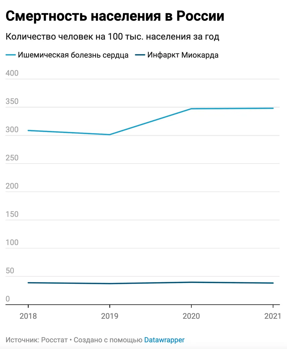О том, насколько «все умирает», можно было бы косвенно судить по данным о смертности населения по естественным причинам. Но Росстат публикует их только до 2017 года, Минздрав дает скупую информацию по «смертности от отдельных причин смерти» с 2015 по 2019 год.