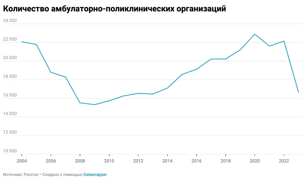В целом в России за последние 20 лет вдвое уменьшилось количество больниц. Когда их закрывали одну за другой, это называлось оптимизацией. Похожий процесс шел и с поликлиниками, но медленнее.