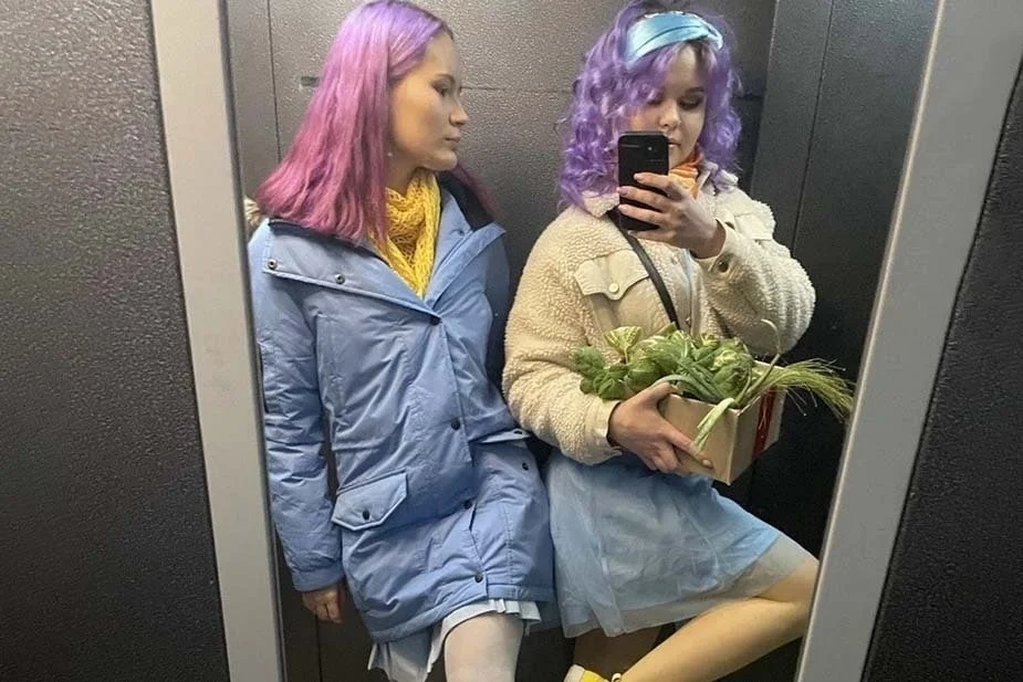 Хотя, если быть точным, эта сказка началась даже не в апреле, а в марте, когда Надин посреди ночи позвонила подруга и сказала, что ее мать бежит из Украины, что сейчас пересекает границу с Россией и что в Белгороде у нее нет никого — и спросила, можно ли ей у Надин переночевать. А если совсем с самого начала, то 24 февраля 2022 года Надин встретила, будучи, конечно, очень яркой и заметной, но все-таки абсолютно обычной 27-летней зумеркой. Огромная копна кудрявых фиолетовых волос, пирсинг на ноздре, стрелки, фиолетовые же леггинсы, мировоззрение — феминизм, хобби — блогинг. Из проблем — падающие охваты и выцветшая татуировка. Из самых страшных проблем — отсутствие интернета: «Я, может, чего-то не знаю, может, в суперопасной/секретной зоне живу? То инета нет, то сети. *** [надоело]. Жесть какая-то (как можно тут жить, как вы живете(с)» (из старого сохранившегося поста в канале).