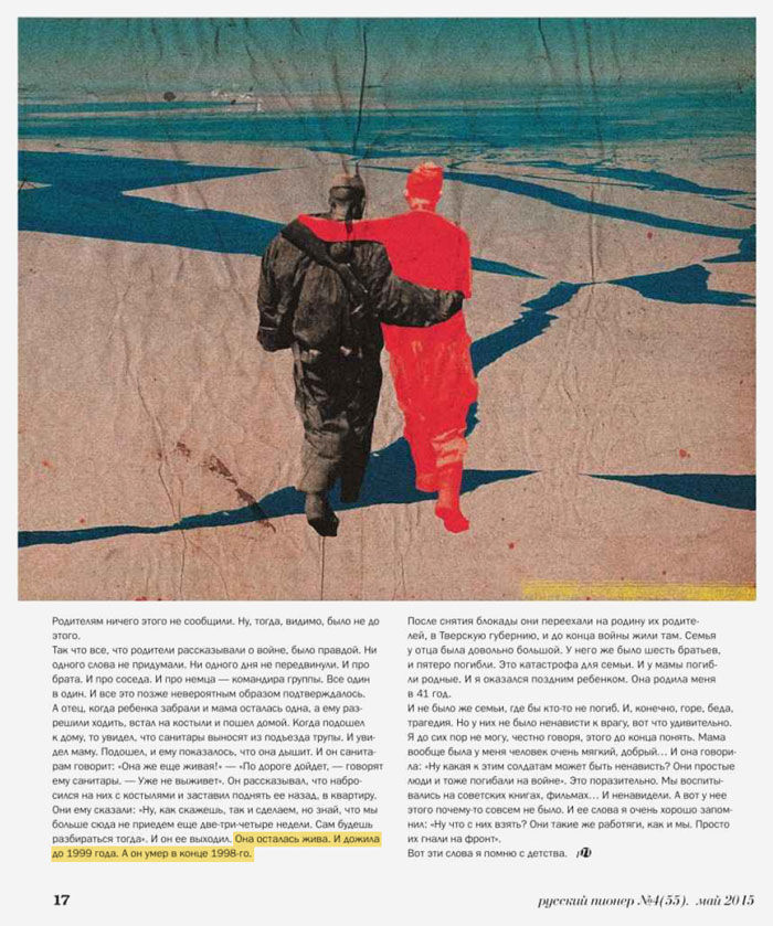 Согласитесь, пронзительная зарисовка — человек спасает жену от верной гибели в городе, где смерть повсюду. Чтобы добавить этому эпизоду убедительности, автор колонки тут же пишет: «Так что все, что родители рассказывали о войне, было правдой. Ни одного слова не придумали».