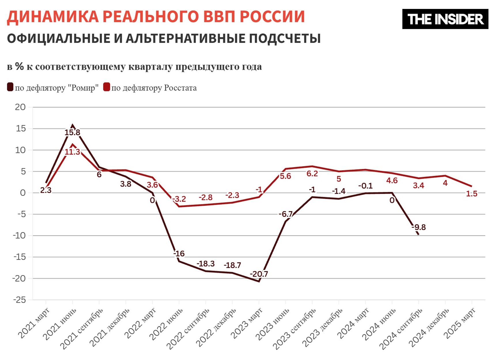 Исходя из данных «Ромира» об инфляции, за 2022 год экономика сократилась на 19%, а после трех кварталов 2024 года дело шло к падению еще на 10%