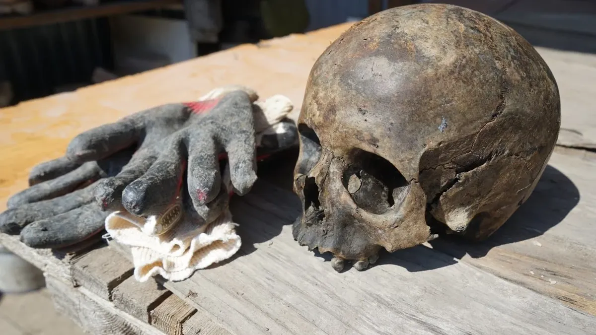 Иоанновский раскоп сложен не только для новичков, но и для опытных рабочих. Тут и почти вертикальный трап на глубину пять метров, и постоянные заботы об откачке грунтовых вод. И обычную траншею для воды не прорубишь через гробы, поэтому воду, помимо насоса, приходится откачивать ведрами.