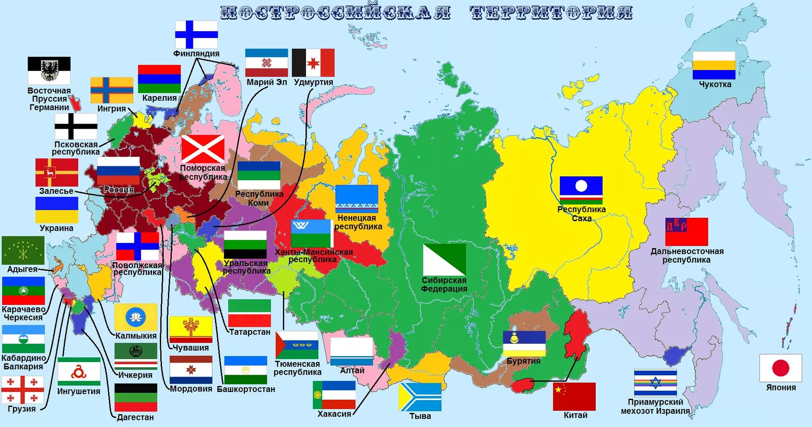 Территории потенциального распада Российской Федерации, изображение приведено в иллюстративных целях / Альянс коренных народов