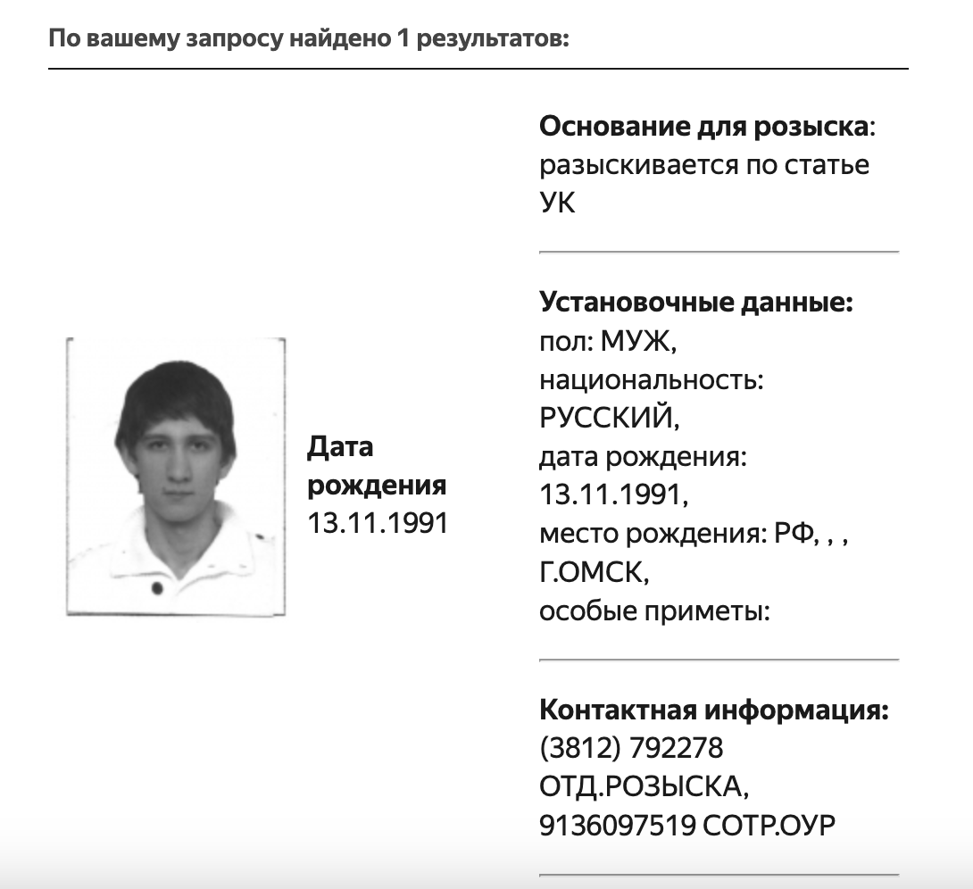МВД объявило в розыск основателя «Омского гражданского объединения» («ОГО») Даниила Чебыкина. Информацию об этом «Медиазона» обнаружила в базе ведомства.