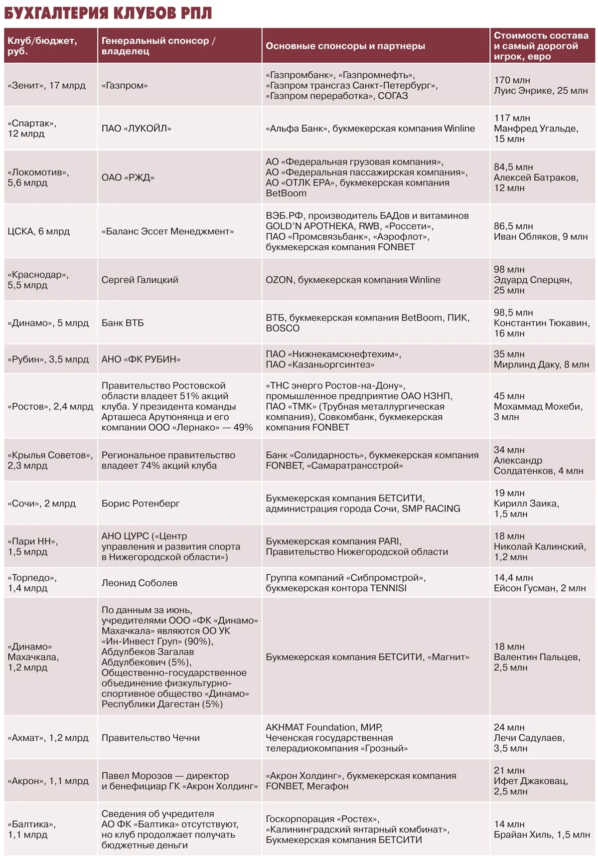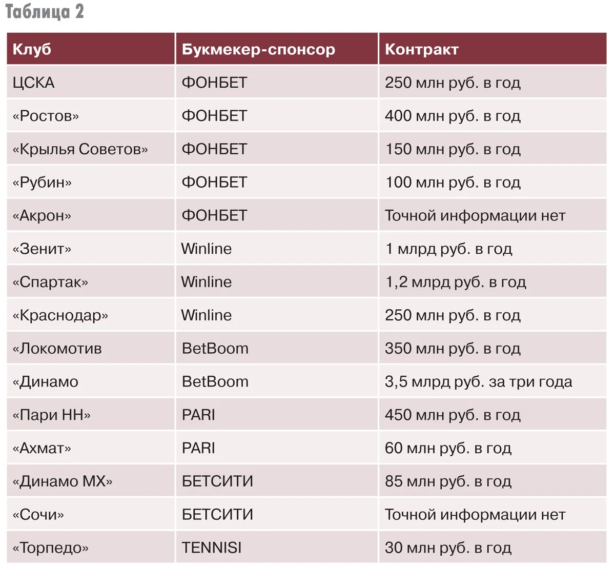 А возьмите «Пари НН». Нижегородский клуб, носящий название в честь спонсора (букмекерской конторы PARI), вылетел из премьер-лиги по спортивному принципу, но тут же «вернулся» в высший свет благодаря закрытию «Химок». Но интересно иное: без помощи фирмы по приему ставок, выплачивающей команде, согласно контракту, 450 миллионов рублей ежегодно, коллектив, вероятно, уже бы давно распустили. Кстати, посмотрите, сколько башляют (по-другому и не скажешь) нынче букмекеры клубам премьер-лиги. Отмечу, что даже для московских команд цифры весьма существенные.