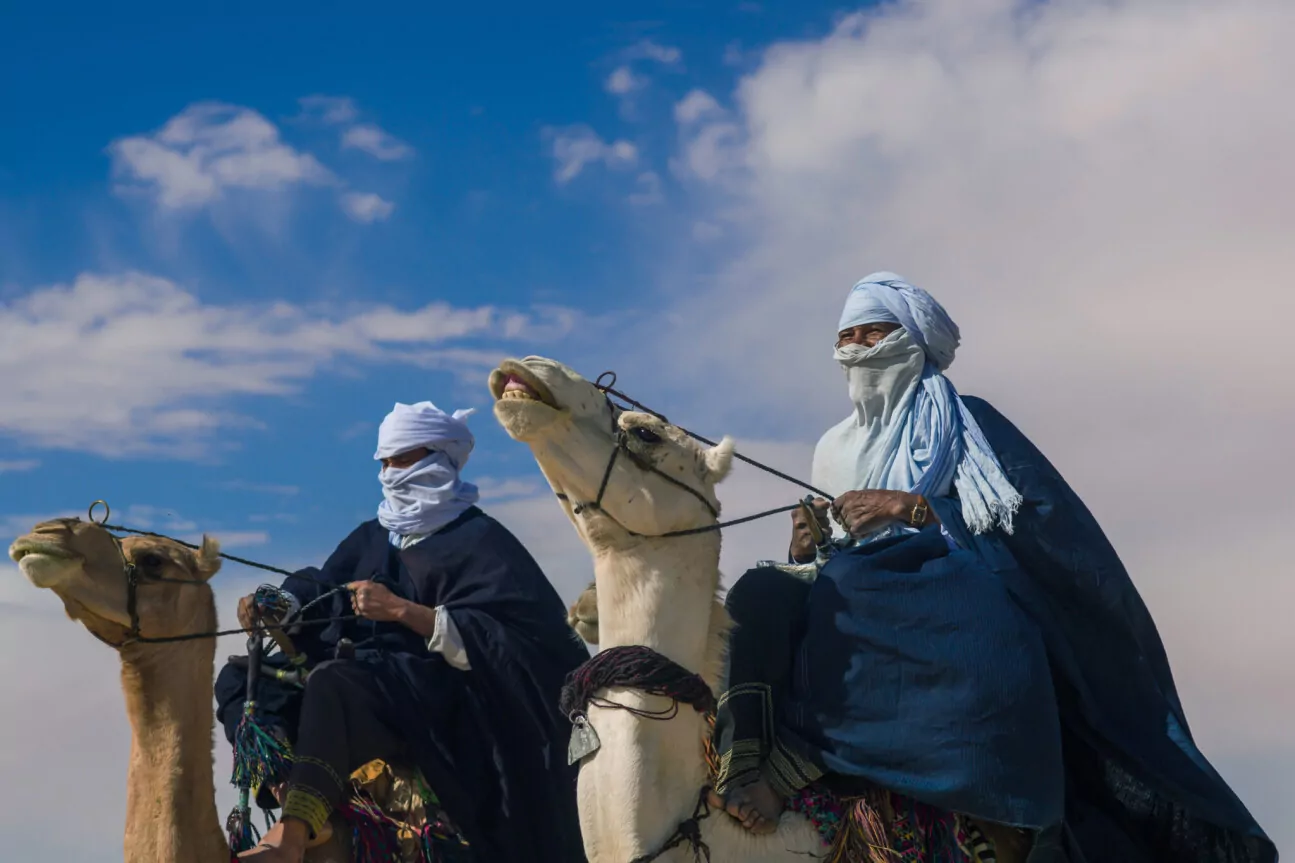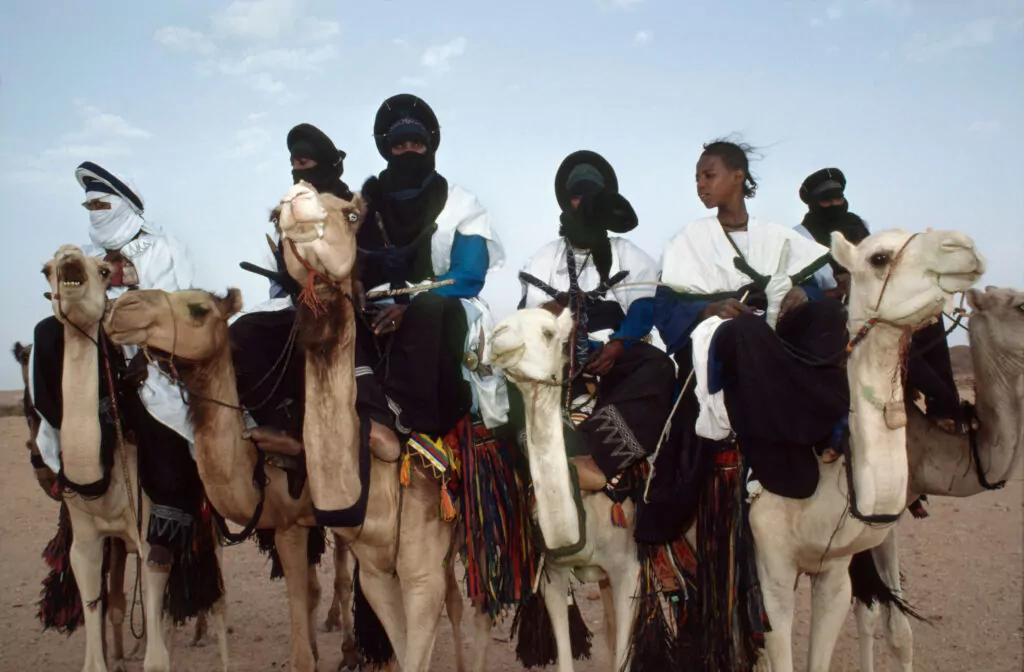 В Африке живет больше двух миллионов туарегов — это полукочевой народ, который с древних времен населял пустыню Сахара (хотя некоторые туареги сейчас ведут оседлый образ жизни и живут в городах). Туарегов легко отличить по их внешнему виду: мужчины ходят покрытыми. Сами они называли себя «люди вуали», а в западном мире прижилось название «Синие люди», поскольку в прошлом их платки обычно были цвета индиго.