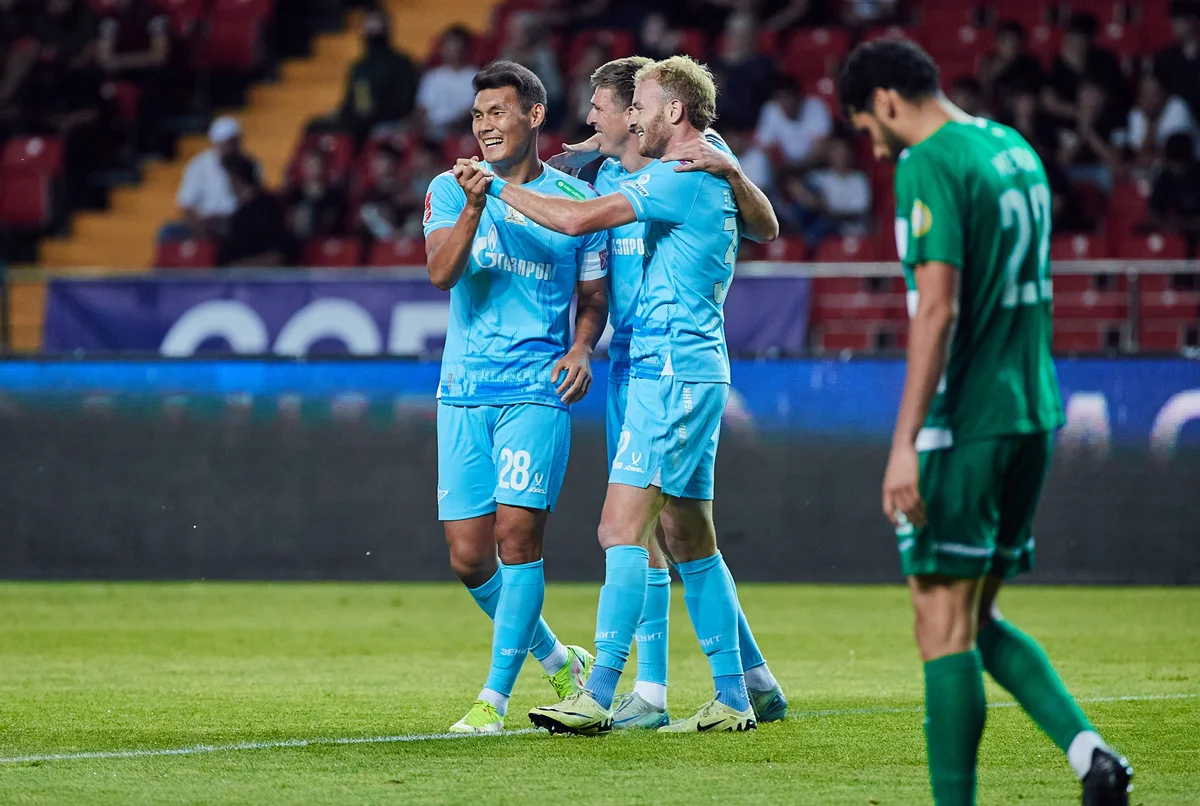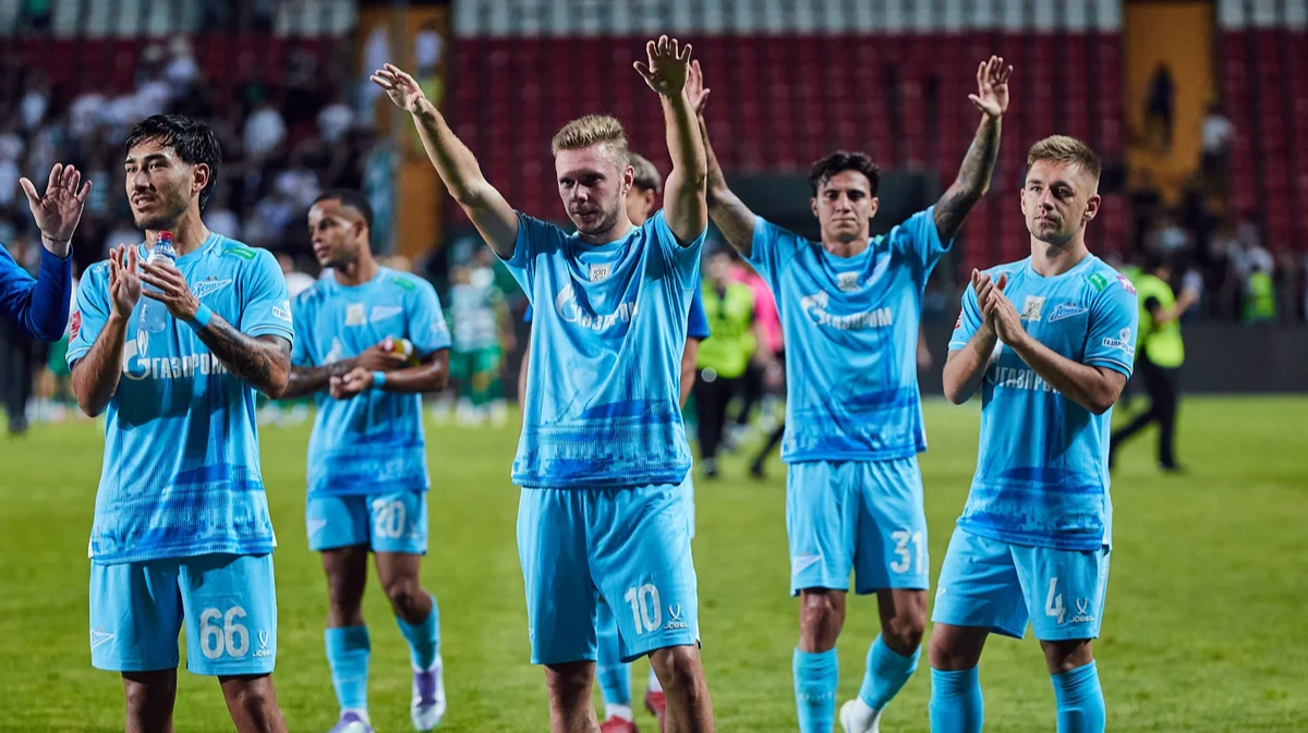 Игроки «Зенита» во время матча с футбольным клубом «Ахмат», Грозный, 30 июля 2025 года. Фото: Вячеслав Евдокимов / ФК «Зенит»