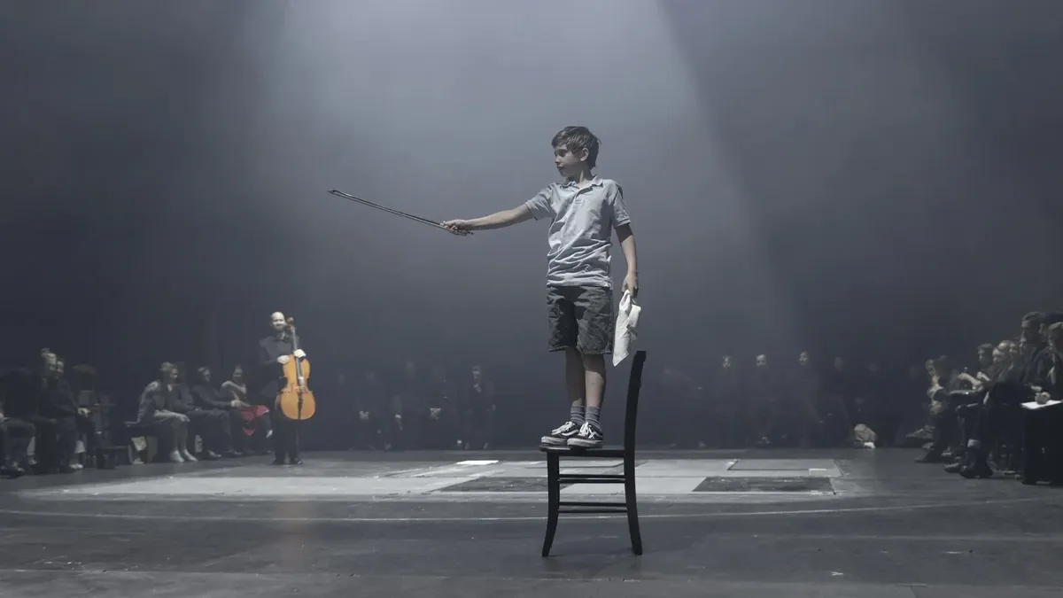 Дети в зале и, правда, искренне смеются, и их совершенно не смущает очевидное одиночество главного героя. Ни его папа, ни его мама совсем не вмешиваются в дела сына. Мальчик выглядит потерянным и никому не нужным даже на собственной деньрожденческой вечеринке, на которой веселятся его ровесники, — среди них именинник, надевший дурацкую голову от ростового костюма медведя, выглядит чужим на собственном празднике. Но и тут ситуацию спасает бабушка: она дарит внуку приключенческий роман, «Двадцать тысяч лье под водой» Жюля Верна. На сцене появляется настоящий «Наутилус», а гигантские рыбы кружатся в испанском танце. Потом мальчик ляжет спать — и в аквариуме рядом с ним окажется золотая рыбка, еще один бабушкин подарок.